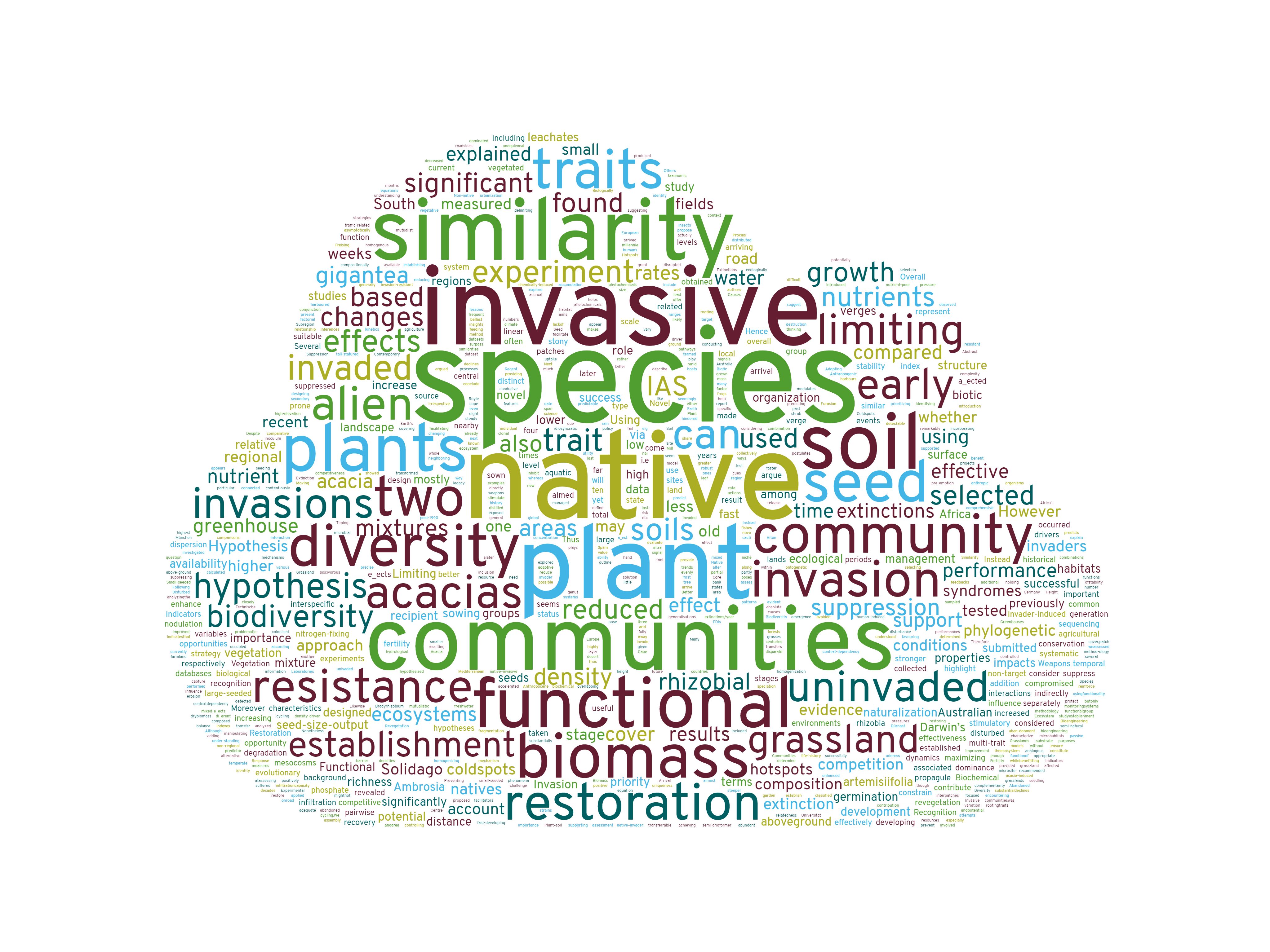 Wordcloud showing terms used in titles and abstracts from my publications up to April 2021.